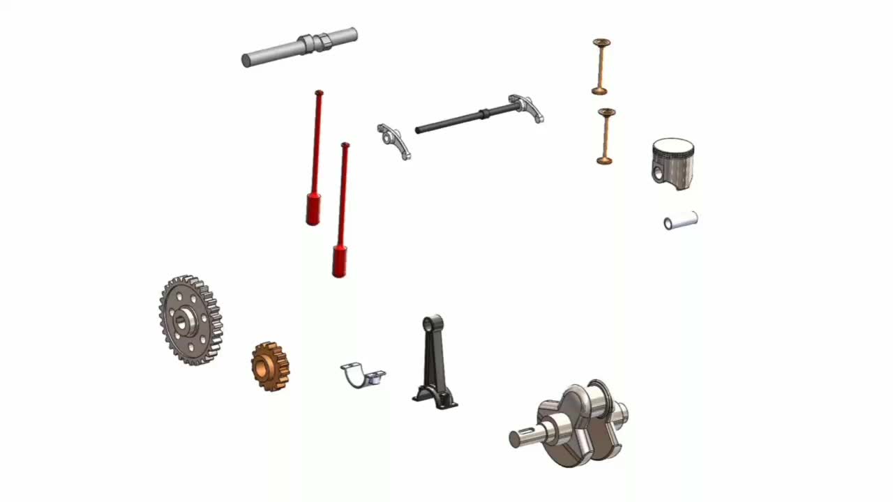 - Piston, Crankshaft, Camshaft, Intake/Exhaust Valves, Connecting Rod, Cylinder Head, Gear